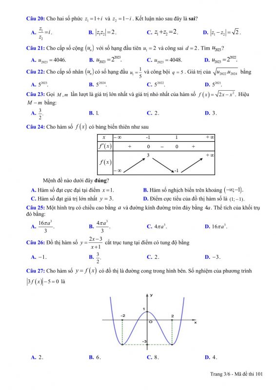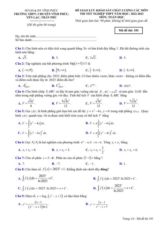 Trích dẫn Đề thi thử tốt nghiệp THPT 2023 môn Toán cụm trường THPT – Vĩnh Phúc: